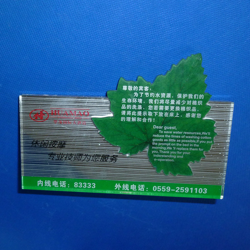 New conservation acrylic room sign for hotels, Free standing desk/Concierge sign